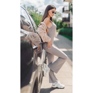 - Élasthanne (22 %) : apporte une élasticité optimale et un effet gainant naturel. Le tissu s’adapte parfaitement aux mouvements du corps et reprend toujours sa forme, idéal pour le sport et le quotidien.