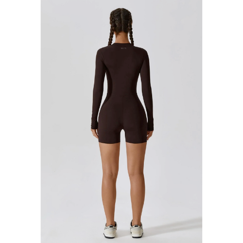 AURA Long Sleeve – l’équilibre parfait entre confort et allure. Confectionnée dans un tissu doux, respirant et extensible, elle épouse les formes comme une seconde peau. Sa coupe ajustée et son zip discret offrent maintien, liberté de mouvement et élégance, du yoga à vos moments de détente.